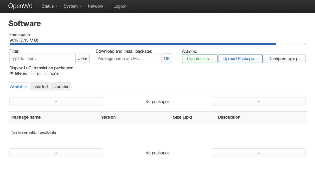 Перейдите в меню System → Software и выполните обновление списка пакетов